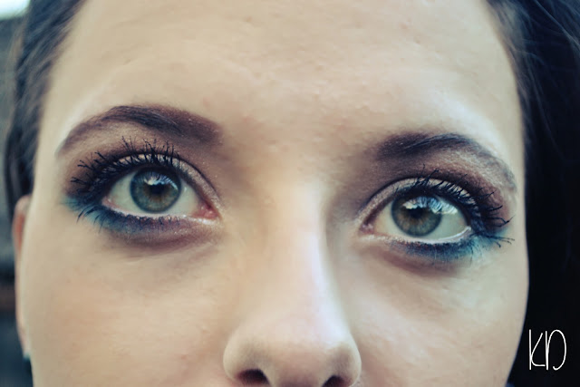 A nedám si pokoj. Zase jsem měla příležitost a tak jsem ji využila - nalíčila jsem zase sestru. Tématicky jsem se snažila to pojmout do akce od Rimmel, kdy se má líčit podle londýnského týdne módy / Trendy jaro-léto 2013. Tak jsem zvolila na horní část oka hnědé kouřové líčení a spodní část oka jsem zvýraznila modře.